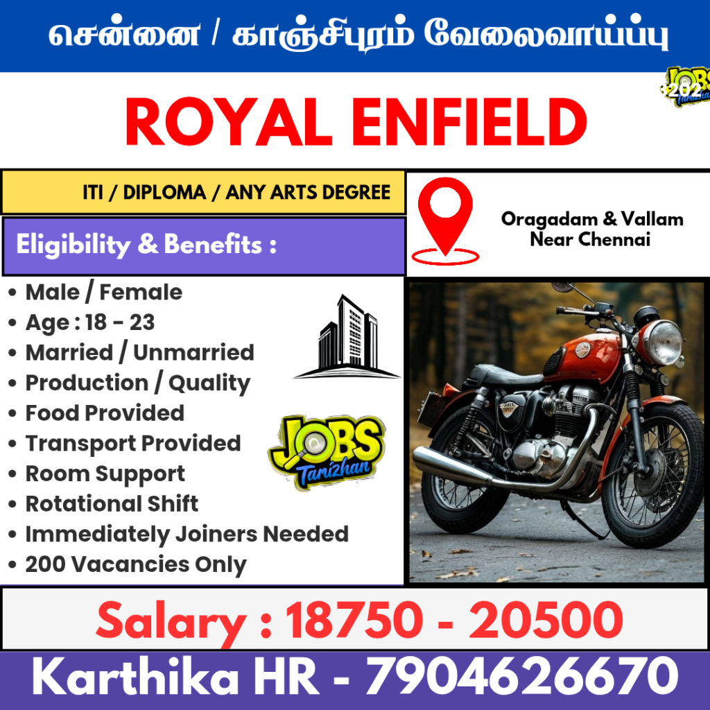 Royal Enfield bike parts Manufacturers in Chennai | Jobs in Chennai | Jobs in Tamilnadu | Jobs in Oragadam & Vallam | Jobs Today Openings 2025 | Jobs in Tamil | Jobs Tamizhan